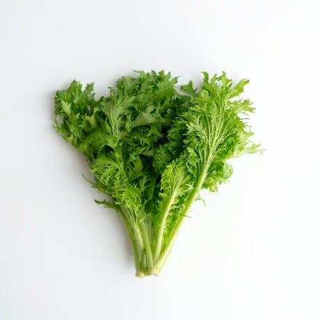 葉のフチにギザギザとした細かい切れ込みがあり、明るいグリーンの葉はやわらかくて、表面がちりめんのように縮れているのが特徴で、ピリッとした辛みを持っています。