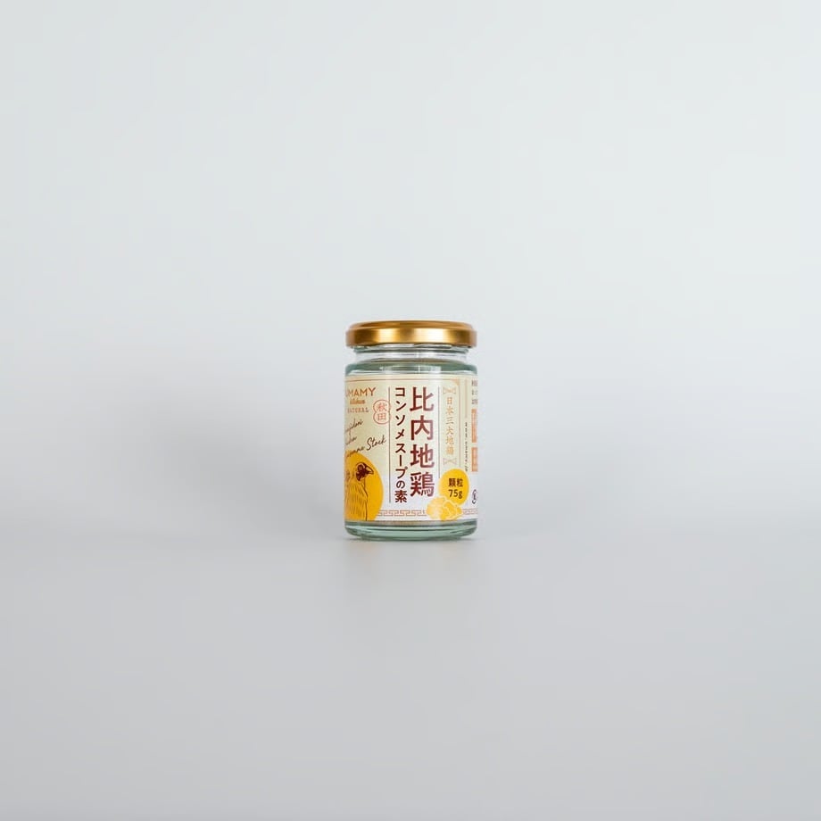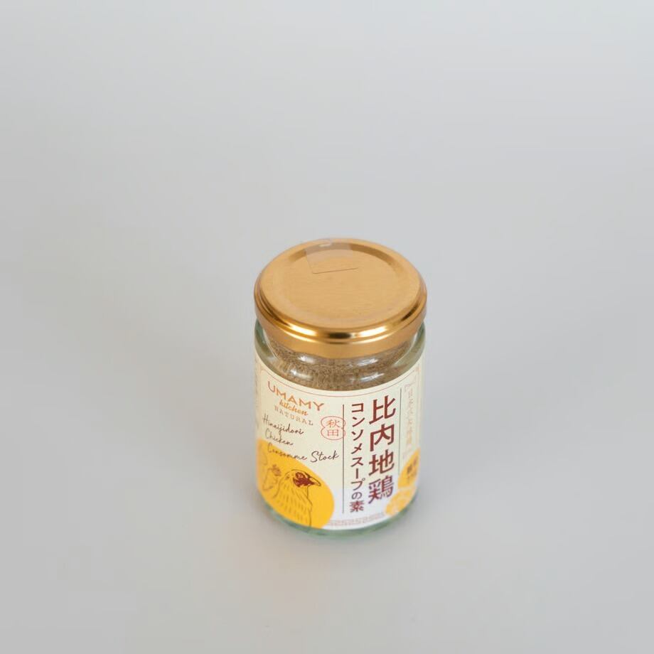 秋田県産比内地鶏を100%使用した顆粒タイプのコンソメスープの素です。?