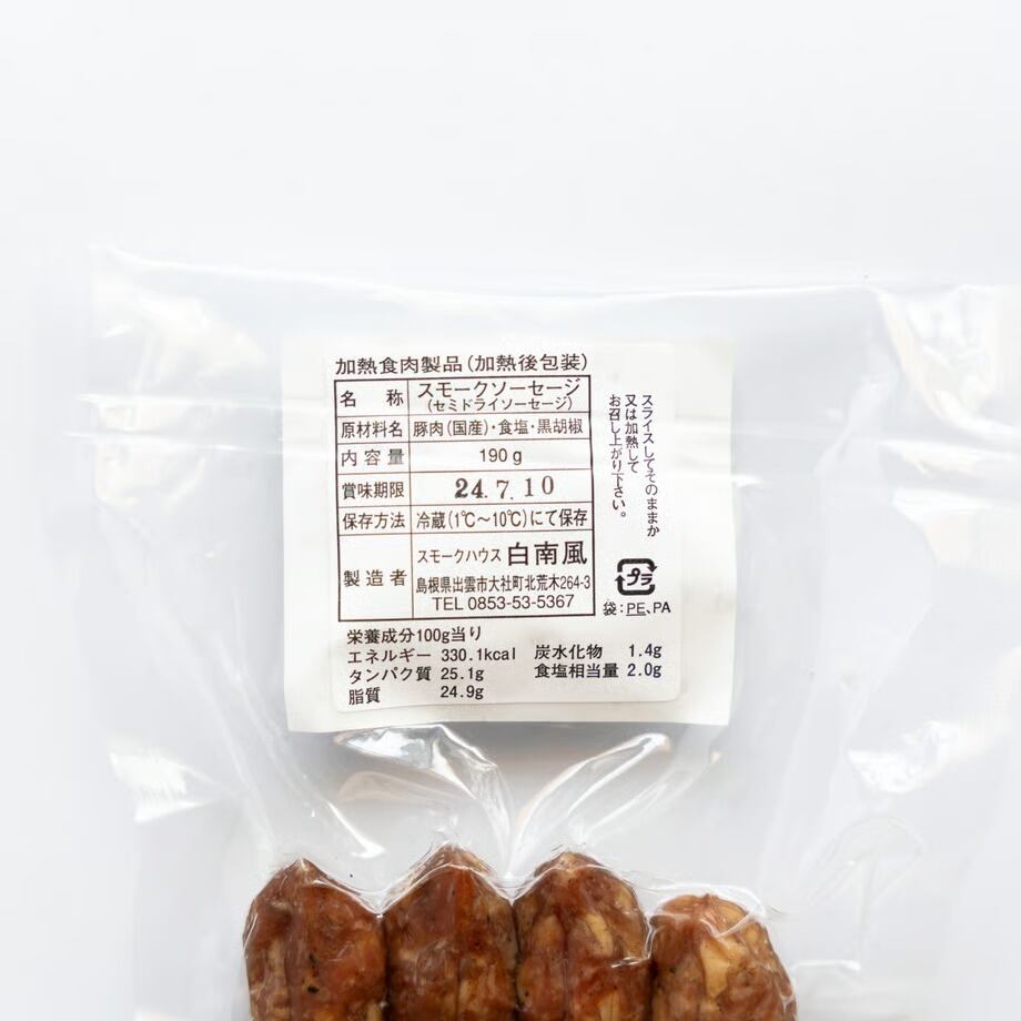 ※「スモークソーセージ」の皮は豚の腸を使用しています。自然のものですので、どうしても皮の厚みに多少の違いがでできます。
