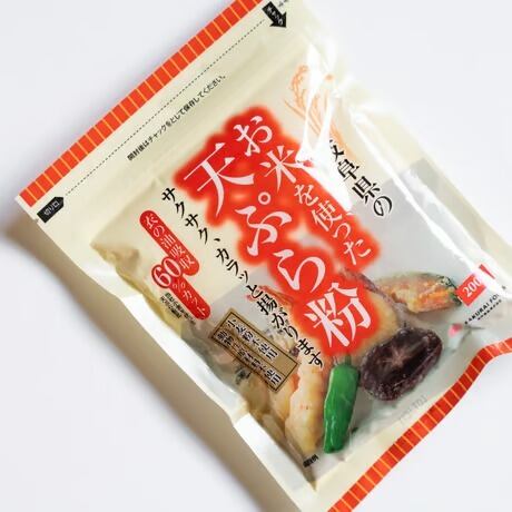 岐阜県産のお米を微粉砕にした米粉を主原料に、北海道産契約栽培の馬鈴薯でん粉、有機チクピー豆粉末などを使用した天ぷら粉です。